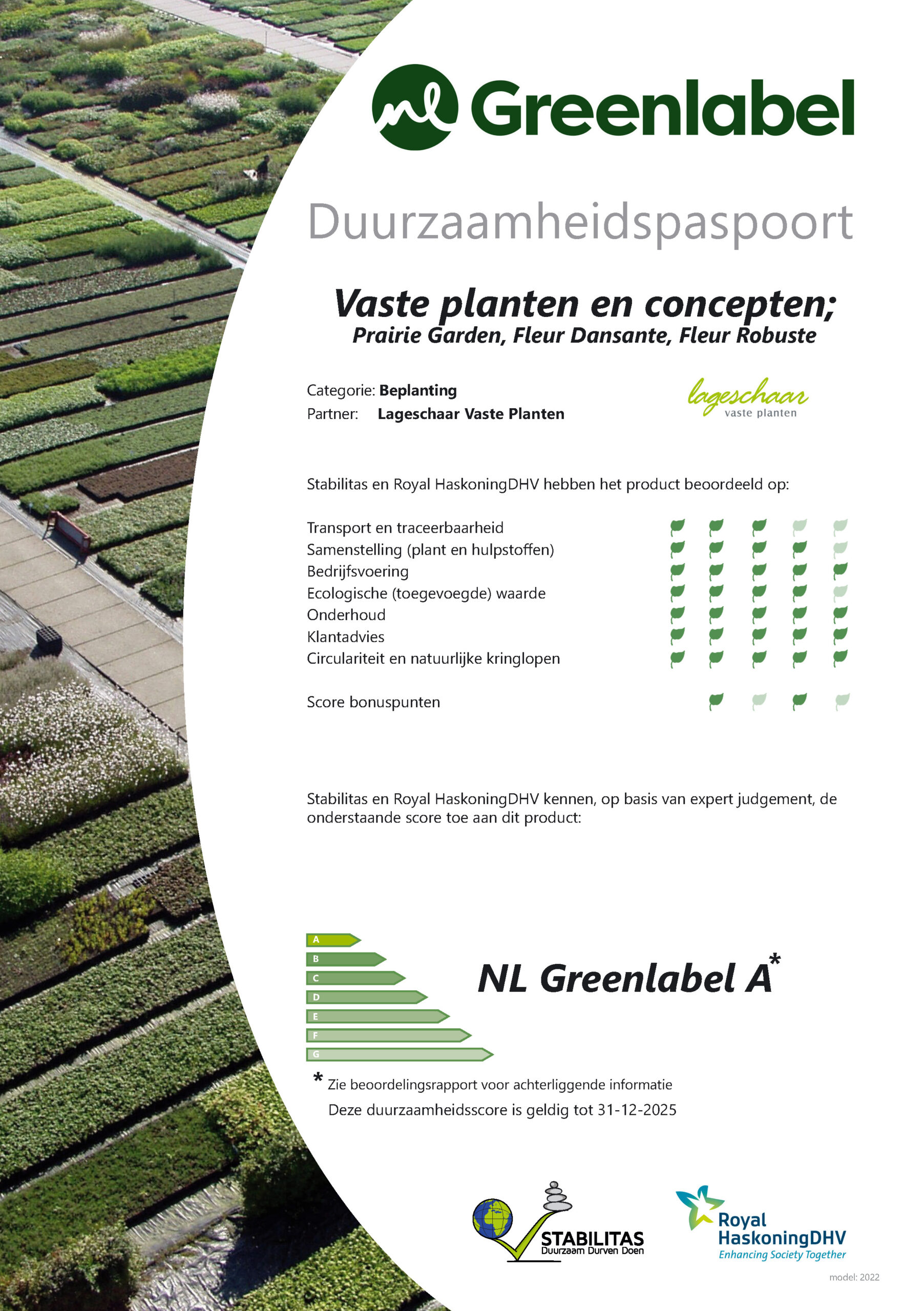 Onderhoudsarm en duurzaam zijn belangrijke pijlers van onze visie. Naast een groot assortiment vaste planten, bieden wij de groenprofessional een totaaloplossing waarin onze sterke vaste planten op een doordachte manier met elkaar gecombineerd worden. Deze natuurlijke beplantingsconcepten Prairie Garden®, Fleur Dansante® en Fleur Robuste® zijn flexibel in te zetten en hierdoor toe te passen in elk groendesign.